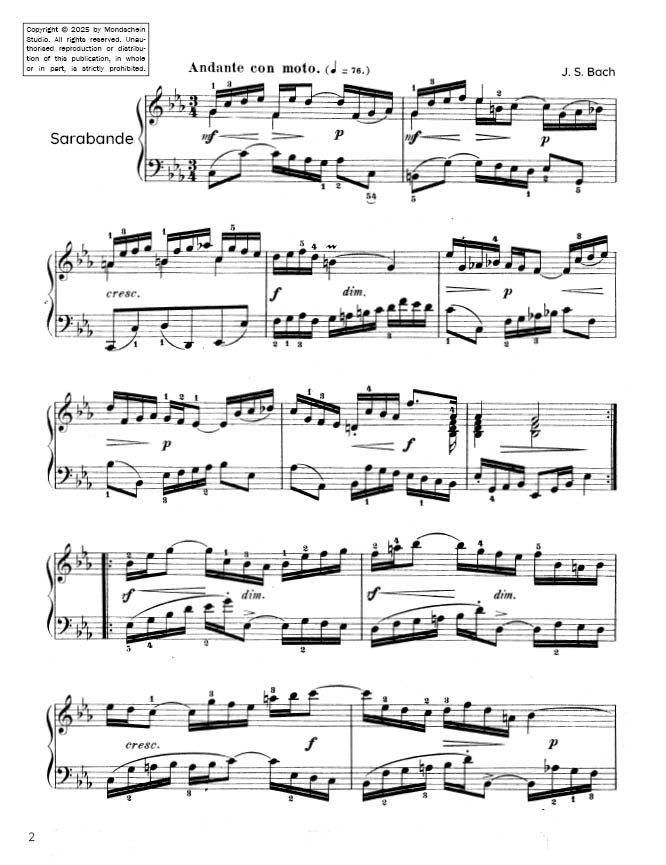 Bach - Sarabande from Partita No. 2 in C minor BWV 826 (PDF Sheet Music / Digital Download)