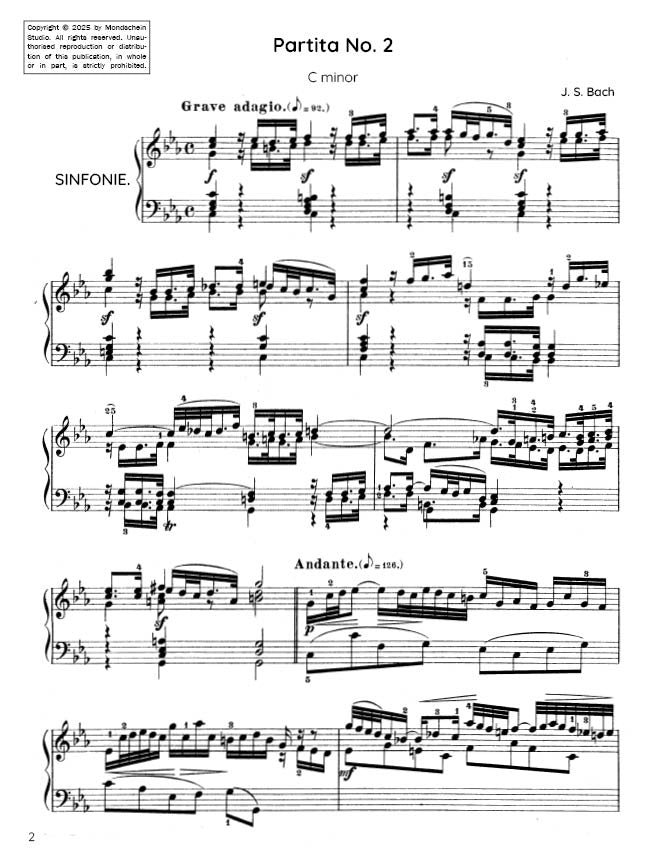 Bach - Sinfonia from Partita No. 2 in C minor BWV 826 (PDF Sheet Music / Digital Download)