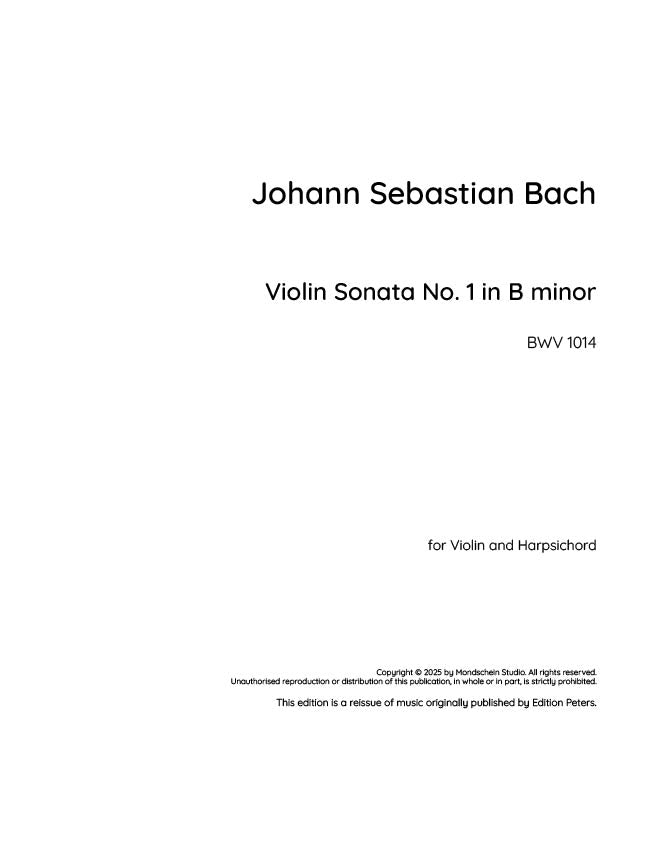 Bach - Violin Sonata No. 1 in B minor for Violin and Harpsichord, BWV 1014 (PDF Sheet Music / Digital Download)