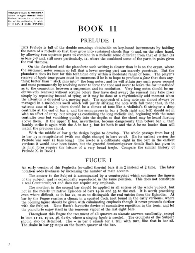 Bach - The Well-Tempered Clavier, Book II - No. 1 in C major, BWV 870 (PDF Sheet Music / Digital Download)