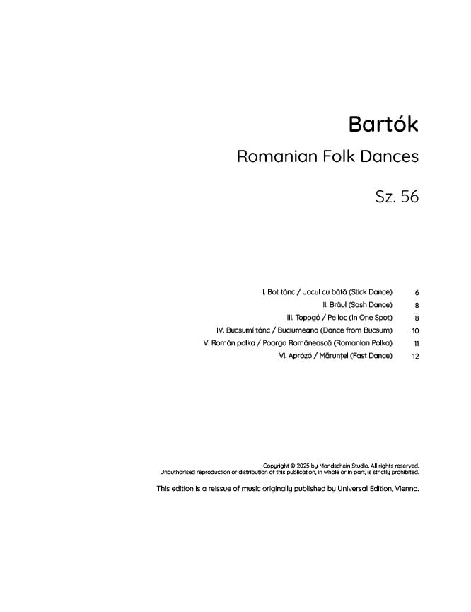 Bartók - Romanian Folk Dances, Sz. 56 (PDF Sheet Music / Digital Download)