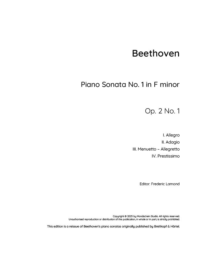 Beethoven - Piano Sonata No. 1, Op. 2 No. 1 (PDF Sheet Music / Digital Download)