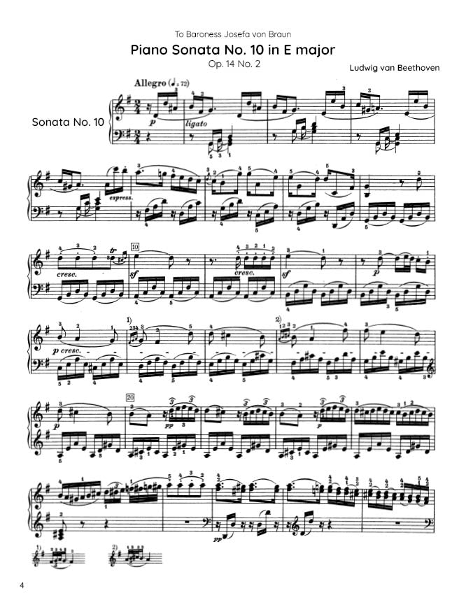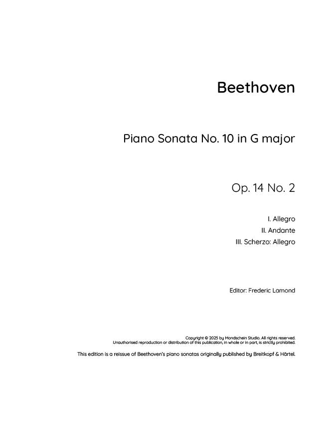 Beethoven - Piano Sonata No. 10, Op. 14 No. 2 (PDF Sheet Music / Digital Download)
