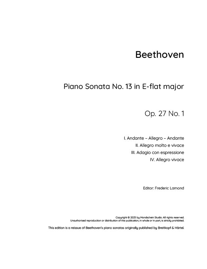 Beethoven - Piano Sonata No. 13, Op. 27 No. 1 (PDF Sheet Music / Digital Download)