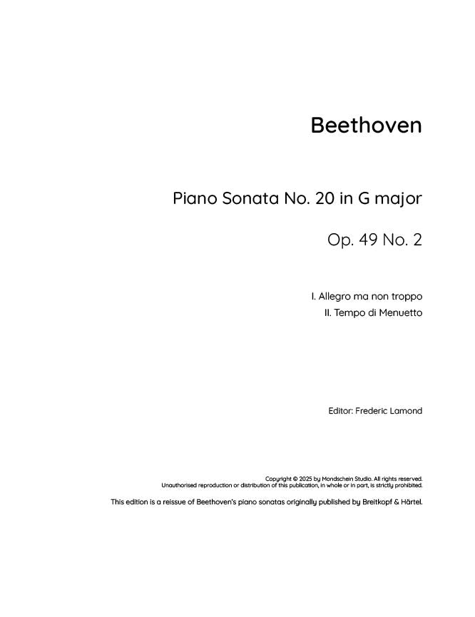 Beethoven - Piano Sonata No. 20, Op. 49 No. 2 (PDF Sheet Music / Digital Download)