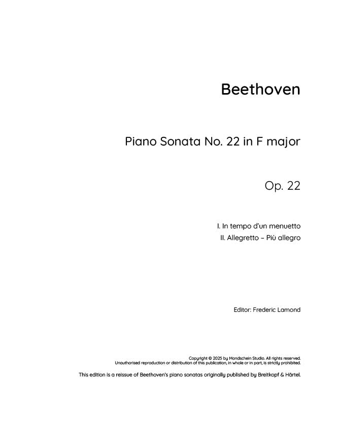 Beethoven - Piano Sonata No. 22, Op. 54 (PDF Sheet Music / Digital Download)