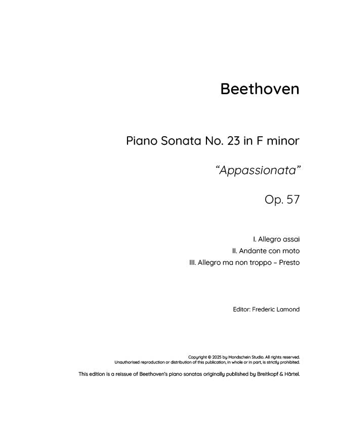 Beethoven - Piano Sonata No. 23, Op. 57 "Appassionata" (PDF Sheet Music / Digital Download)