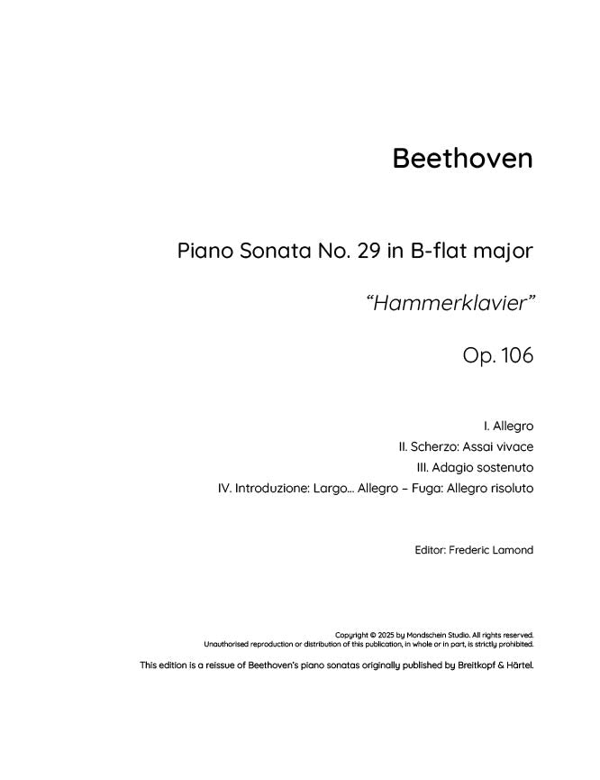 Beethoven - Piano Sonata No. 29, Op. 106 (PDF Sheet Music / Digital Download)