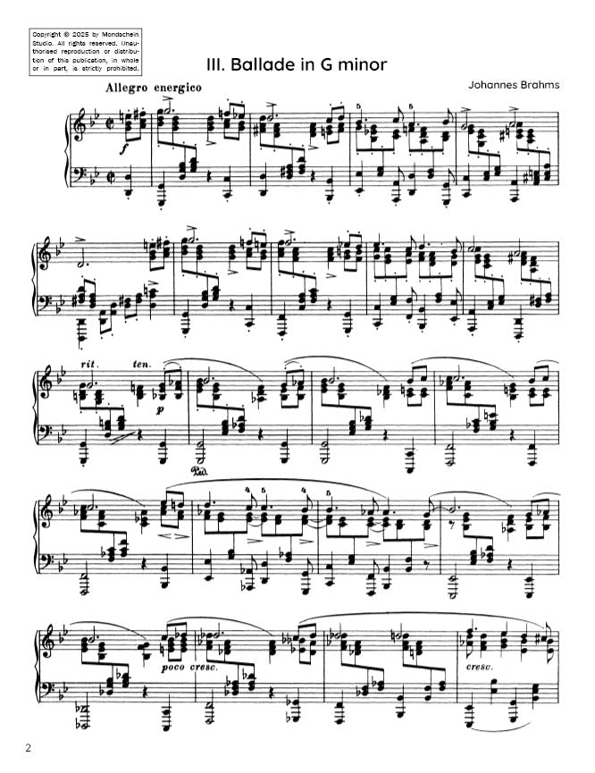 Brahms - Ballade in G minor, Op. 118 No. 3 (PDF Sheet Music / Digital Download)
