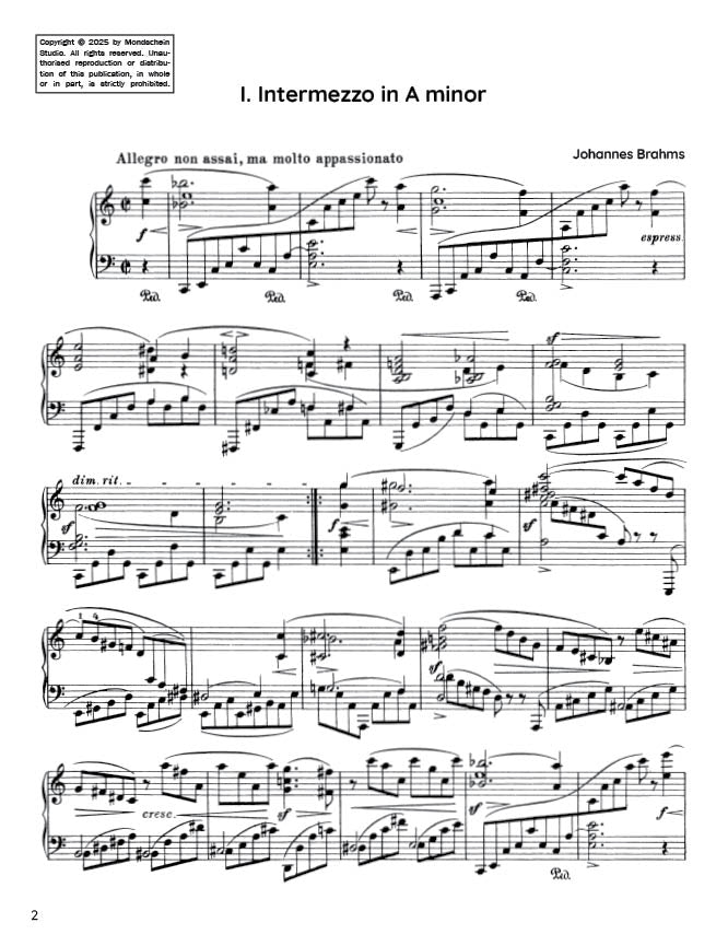 Brahms - Intermezzo in A minor, Op. 118 No. 1 (PDF Sheet Music / Digital Download)
