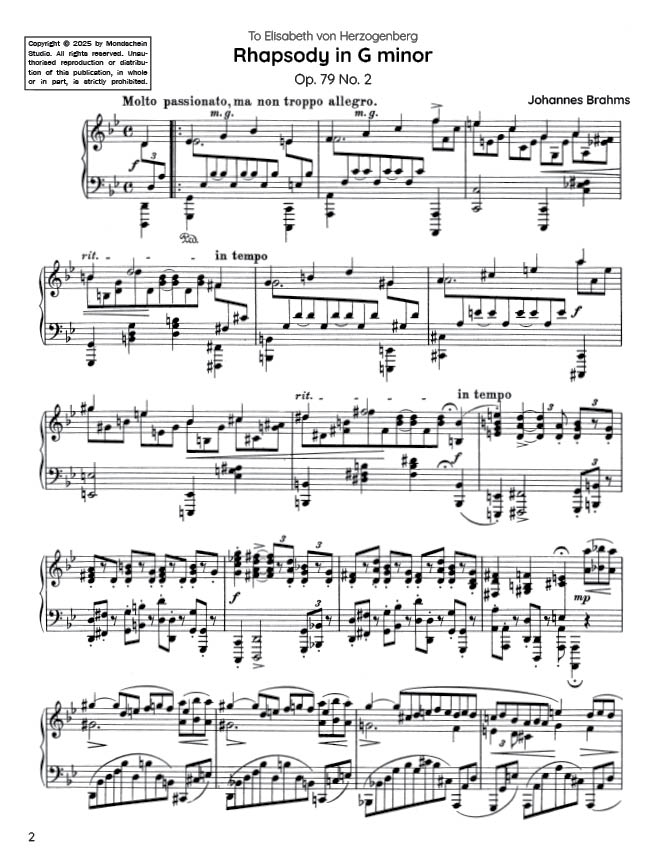 Brahms - Rhapsody in G minor, Op. 79 No. 2 (PDF Sheet Music / Digital Download)