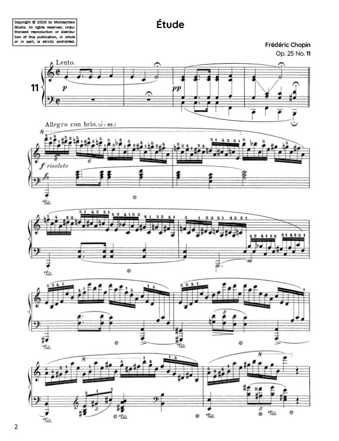 Chopin - Etude in A minor, Op. 25 No. 11 (PDF Sheet Music / Digital Download)