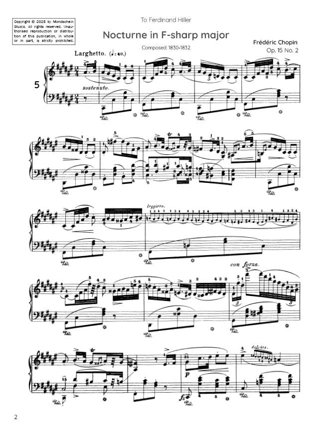 Chopin - Nocturne No. 5, Op. 15 No. 2 (PDF Sheet Music / Digital Download)