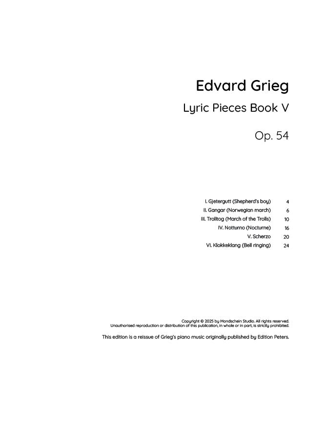 Grieg - Lyric Pieces Book V, Op. 54 (PDF Sheet Music / Digital Download)