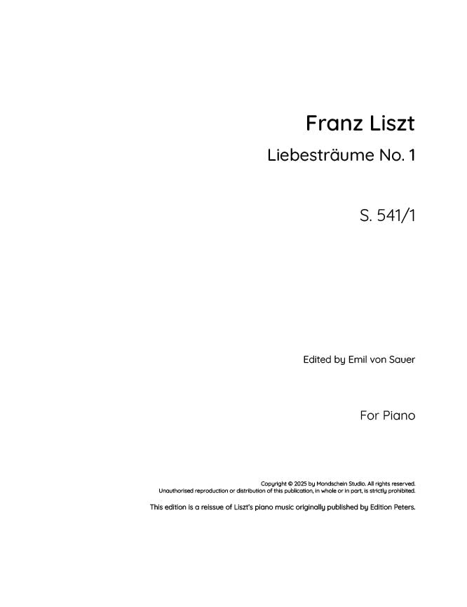 Liszt - Liebesträume No. 1 (PDF Sheet Music / Digital Download)