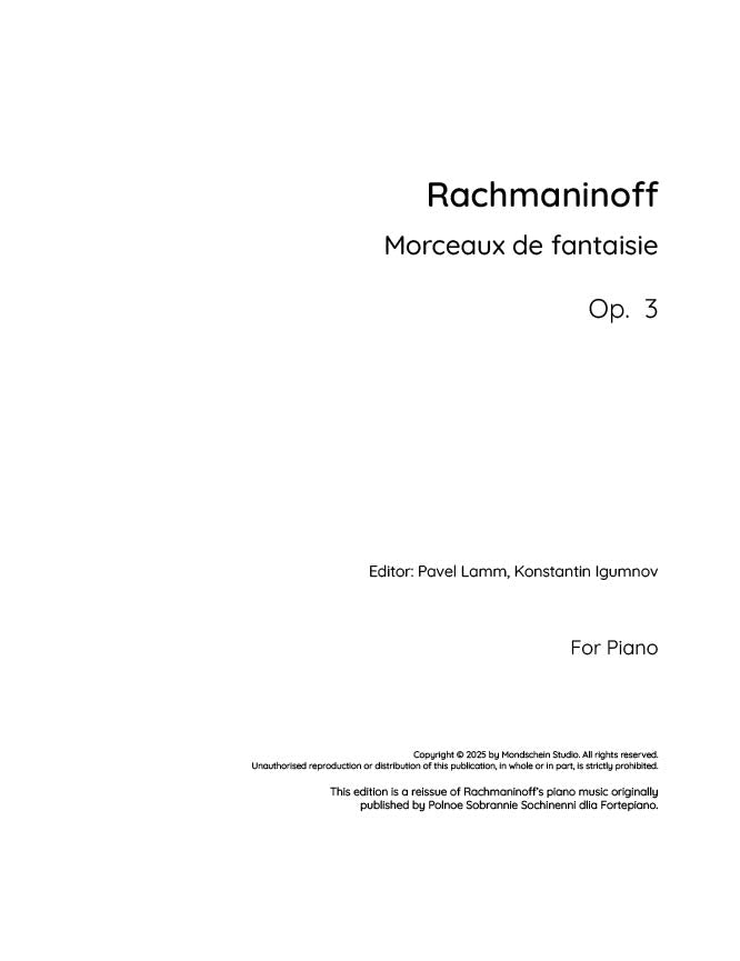 Rachmaninoff - Morceaux de fantaisie, Op. 3 (PDF Sheet Music / Digital Download)