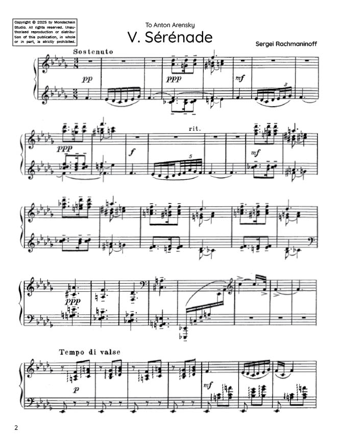 Rachmaninoff - Serenade, Op. 3 No. 5 (PDF Sheet Music / Digital Download)