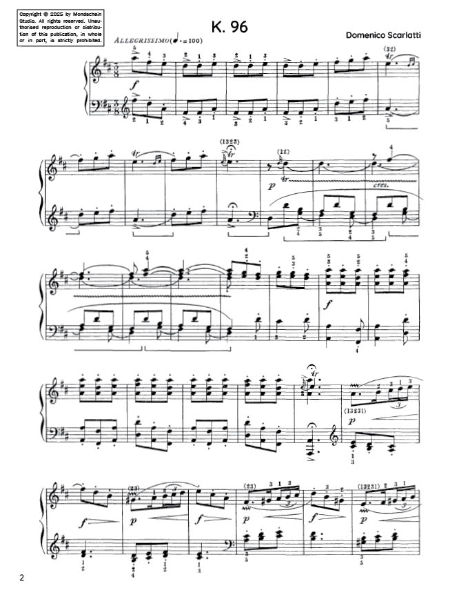 Scarlatti - Sonata in D major, K. 96 (PDF Sheet Music / Digital Download)