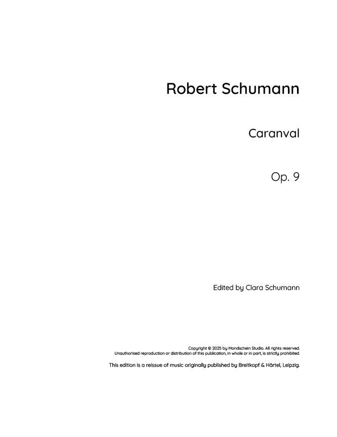 Schumann - Carnaval, Op. 9 (PDF Sheet Music / Digital Download)