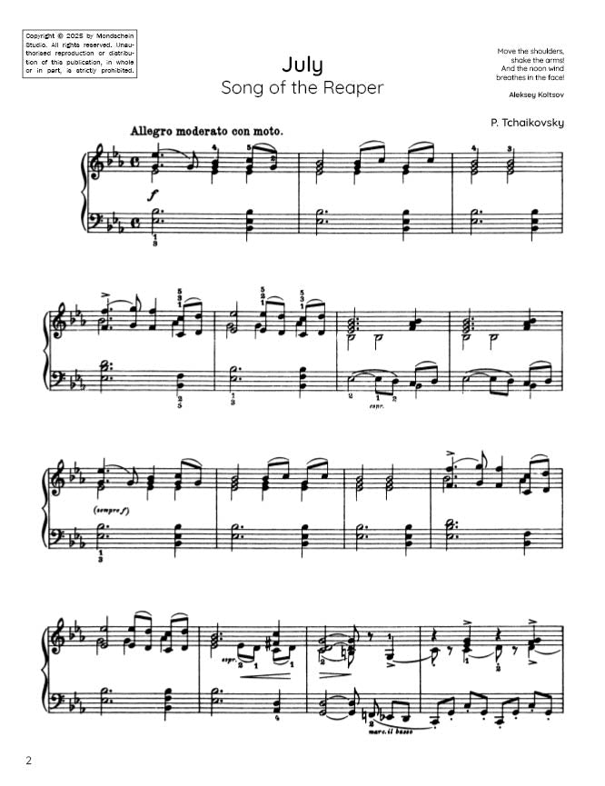 Tchaikovsky - July from The Seasons, Op. 37a (PDF Sheet Music / Digital Download)