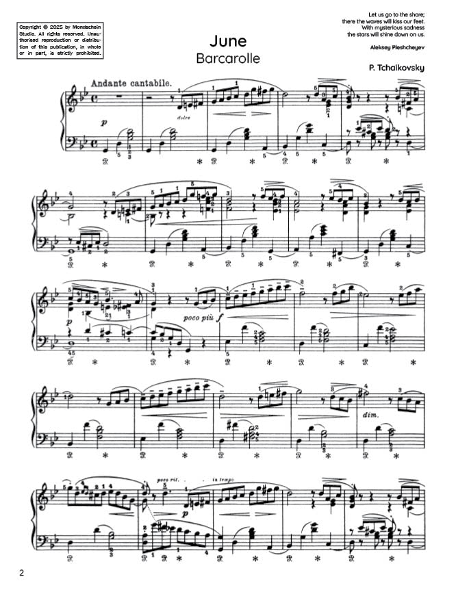 Tchaikovsky - June from The Seasons, Op. 37a (PDF Sheet Music / Digital Download)