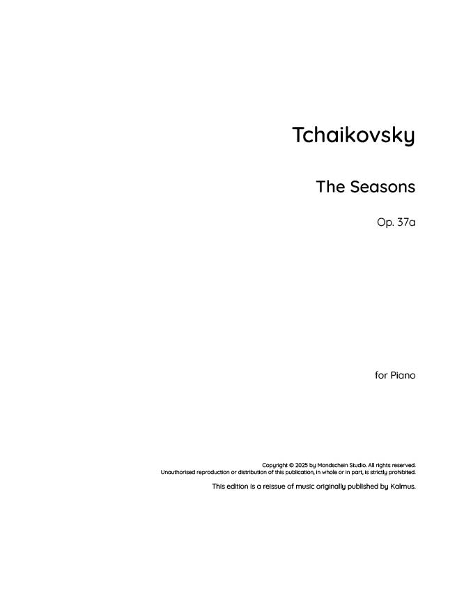 Tchaikovsky - The Seasons, Op. 37a (PDF Sheet Music / Digital Download)