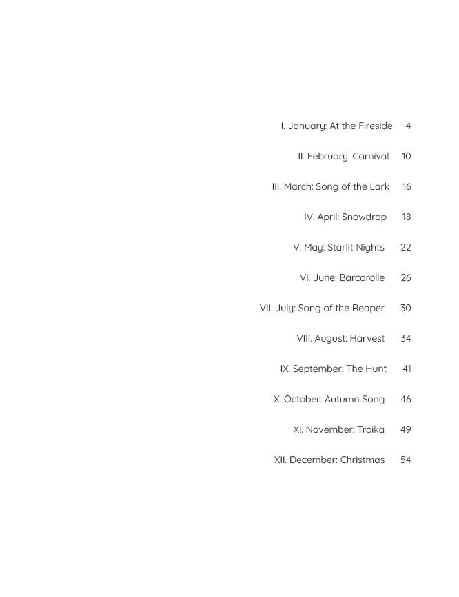 Imagine 12 captivating musical portraits, each a vivid brushstroke of sound depicting a month of the year. Tchaikovsky's "The Seasons," Op. 37a, is a collection of charming and evocative character pieces for solo piano, transporting you through the changing landscapes and moods of the Russian year.